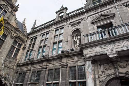 Fototapeta premium Historisches Rathaus mit Flaggen und Goldschmuck in Voerne, Bel