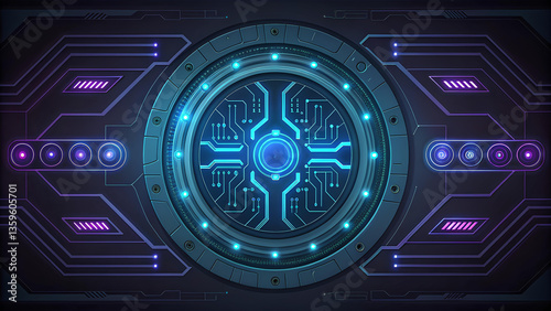 © namphon, Obraz premium hitech background stunning hitech background featuring futuristic circular design with glowing blue and purple elements, perfect for tech themes