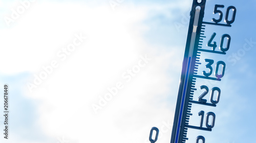 © OFC Pictures, Obraz premium Hitzewelle. Thermometer zeigt 37° Celsius