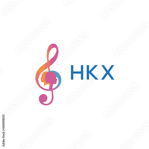 Fototapeta premium HKX “Colorful music logo with human faces and treble clef design” HKX Later Logo, “Creative music academy logo with silhouette heads and notes”