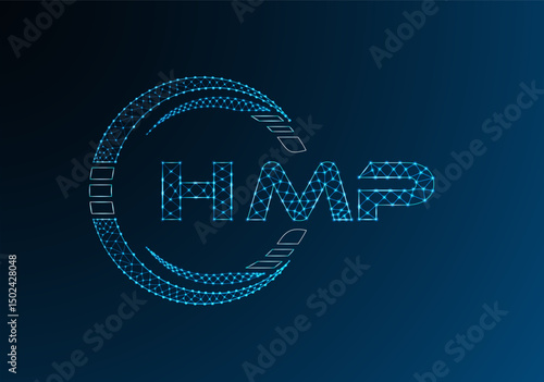 © Anar, Naklejka premium HMP low poly letter logo vector design. HMP lower poly logo design.