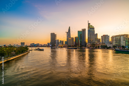 Fototapeta premium Ho Chi Minh City, Viet Nam 02 Jan 2023: Beautiful Sunset at district 1, view...