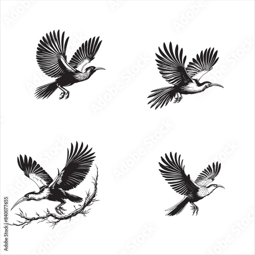 © Furqan, Obraz premium Hoatzin bird flying black silhouette vector on a white background