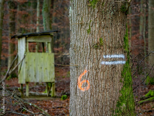 Fototapeta premium Hoch und Jägersitz am Waldrand