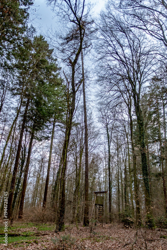 Fototapeta premium Hoch und Jägersitz am Waldrand