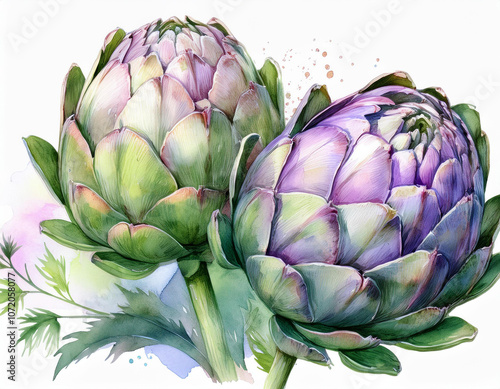 © Juliana, Fototapeta premium Hochwertige Illustration von Artischocken gemalt in aquarell