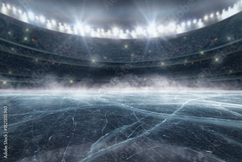 © Igor Link, Fototapeta premium Hockey ice rink sport arena empty field - ice hockey stadium