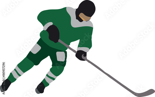 © SvgOcean, Fototapeta premium Hockey player in green uniform, vector illustration on white background