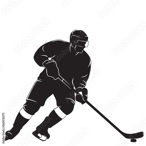 Fototapeta premium Hockey Player Silhouette with Stick and Puck on White Background