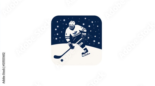 © lestari, Fototapeta premium Hockey player skating on ice in snowy landscape. Illustration. Possible use for sports website or app
