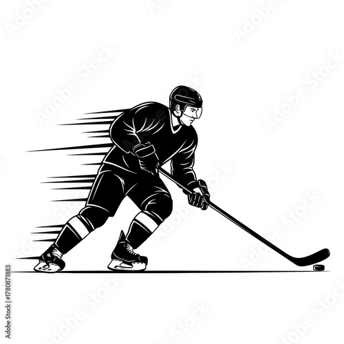 © MDMAHAMUDUL HASAN, Obraz premium Hockey player striking puck with speed lines