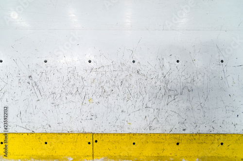 Fototapeta premium Hockey rink boards with scratched and damaged surface