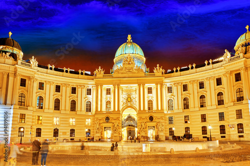 © BRIAN_KINNEY, Obraz premium Hofburg Palace seen from Michaelerplatz, wide-angle view at dusk
