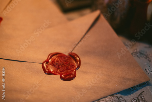 © leroy, Fototapeta premium Hogwarts acceptance letter and envelope with vintage red wax seal. Harry Potter Wizarding World