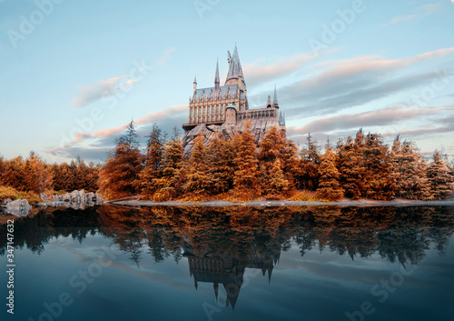 © natchas, Fototapeta premium Hogwarts castle at Universal Studio Japan in autumn season