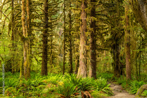 Fototapeta premium Hoh Rainforest Olympic National Park, Hiking Trail through Lush Pacific...