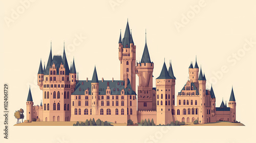 Fototapeta premium Hohenzollern castle in germany, flat design, side view, fairytale castle...