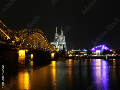 Fototapeta premium Hohenzollernbrücke Kölner Dom und Oper bei Nacht
