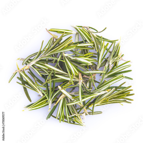 © Angel Simon, Fototapeta premium Hojas de romero frescas aisladas sobre un fondo blanco
