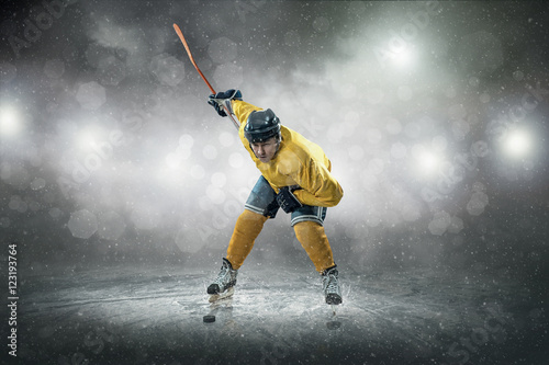 © Andrii IURLOV, Naklejka premium Hokeista na lodzie, na zewnątrz