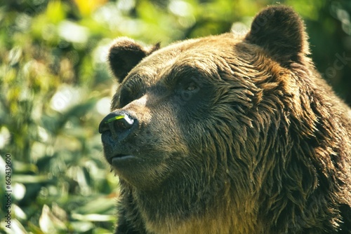 © Khun Ta, Obraz premium Hokkaido, Japan - October 12, 2023: Closeup of Higuma or Brown bear