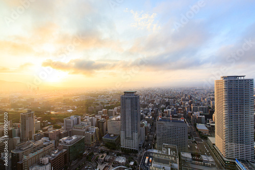 © Bossa Art, Fototapeta premium Hokkaido, JapanBeautiful Sunrise Over Sapporo City Skyline in Hokkaido Japan