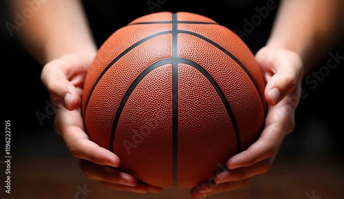 Fototapeta premium Holding a Basketball: The Grip, the Feel, the Game's Potential. Mastering Dribbling Techniques for Success.