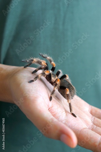 © Firman Maulana Ihsan, Fototapeta premium Holding Brachypelma boehmi tarantula by hand