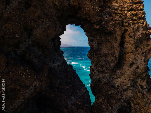 Fototapeta premium hole in the rock silhouette of a girl