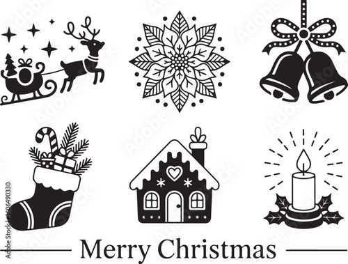 Fototapeta premium Holiday Bell Reindeer Mug Icon Bundle