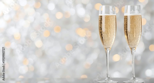© The 2R Artificiality, Obraz premium Holiday celebration scene with white and champagne sparkling glitter and a blurred background