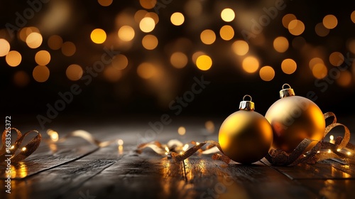 Fototapeta premium Holiday celebration with golden ornaments cozy indoor setting festive decor warm atmosphere close-up view christmas spirit