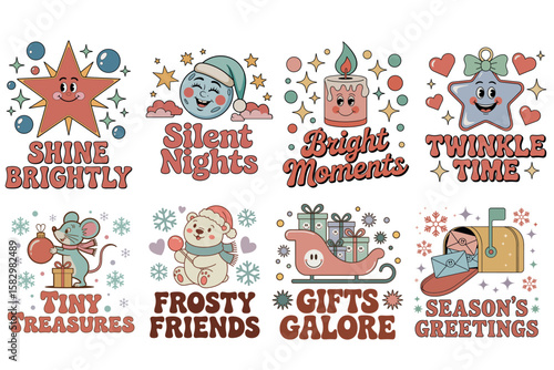 © SVGSTORY, Naklejka premium Holiday character set quotes flat vector muted tones clipart bundle