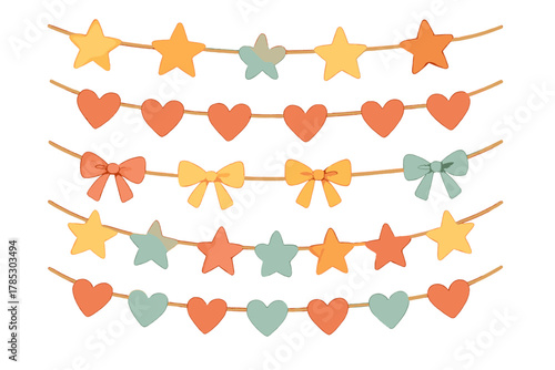 Fototapeta premium Holiday decorations silhouette icon set. featuring star, heart, bow, and garland symbols