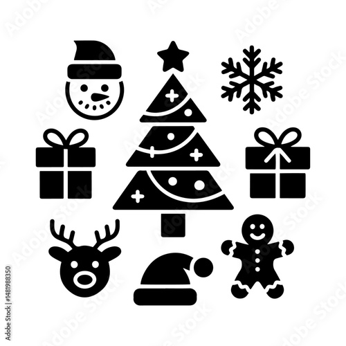 © Stock Master , Naklejka premium Holiday Icon Set – Simple Black & White Christmas Symbols