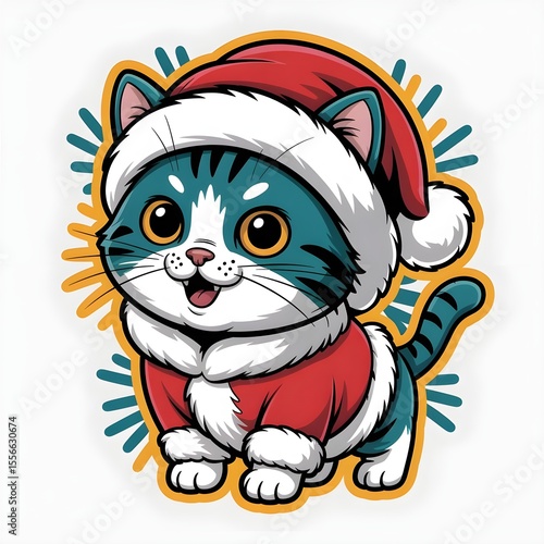 © MehediHasan, Fototapeta premium Holiday Kitten Charm: A festive and adorable cartoon kitten