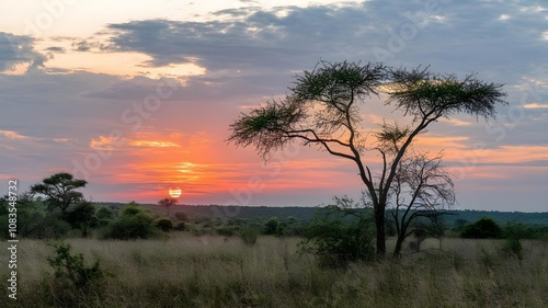 © MrSani, Obraz premium holiday landscape sun setting a forest view