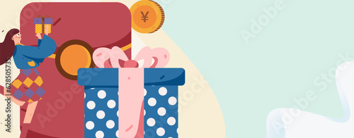 © Lyn Lee, Naklejka premium Holiday Shopping E-Commerce Online Shopping People Flat Vector Concept Operation Hand Drawn Illustration