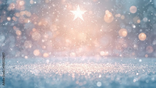 Fototapeta premium Holiday-themed backdrop featuring stars and pastel bokeh lights for festive...