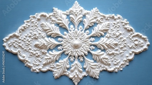 Obraz premium Holiday-themed cookie cutter, shaped like a snowflake, lying on a floured surface, kitchen lighting