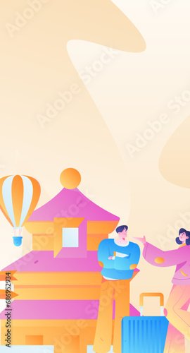 © Lyn Lee, Obraz premium Holiday travel travel characters internet background vector hand drawn illustration