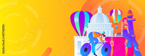 © Lyn Lee, Obraz premium Holiday travel travel characters internet background vector hand drawn illustration