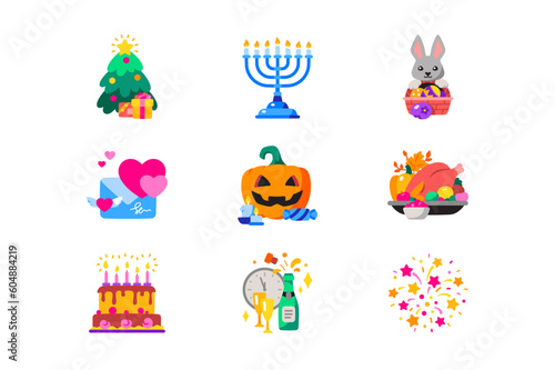© Kit8 d.o.o., Obraz premium Holidays and celebration icon set.