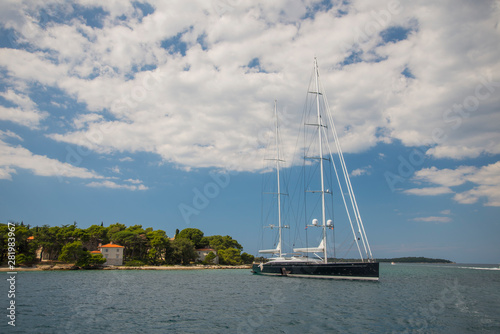 © Andrew Baigozin, Obraz premium Holidays in Croatia, a big sailboat in Brijuni. Summer sunny day.