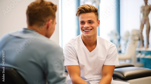 Fototapeta premium Holistic Healing: Masseur and Client at Clinic