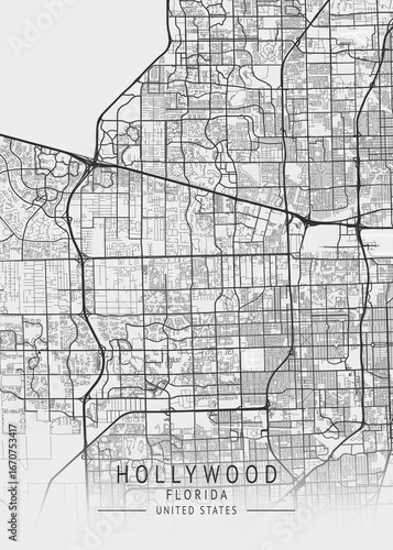 Naklejka premium Hollywood - Florida - US Gray Map Art