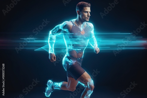 © neirfy, Fototapeta premium Hologram, athlete and running for wellness, exercise for healthy lifestyle and track heart rate.