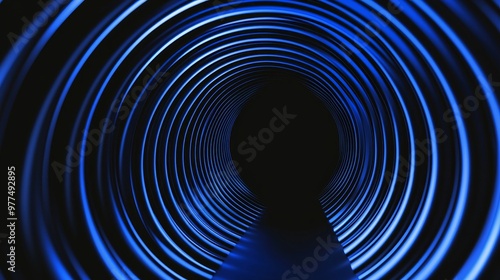© Zaleman, Obraz premium Hologram circle in blue. Shiny ring. Glare scifi. Space tunnel. Empty hole. Glow portal. Astral. Bright disc. Excellent for science, technology. 3D rendering.