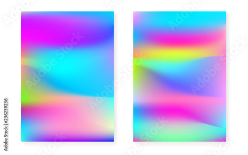 © Holo Art, Fototapeta premium Hologram gradient background set with holographic cover. 90s, 80s retro style. Iridescent graphic template for book, annual, mobile interface, web app. Bright minimal hologram gradient.