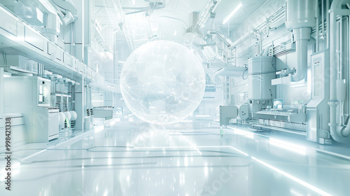 © Adrian Grosu, Fototapeta premium Hologram or plasma sphere in a white research lab. Advanced futuristic technology concept.